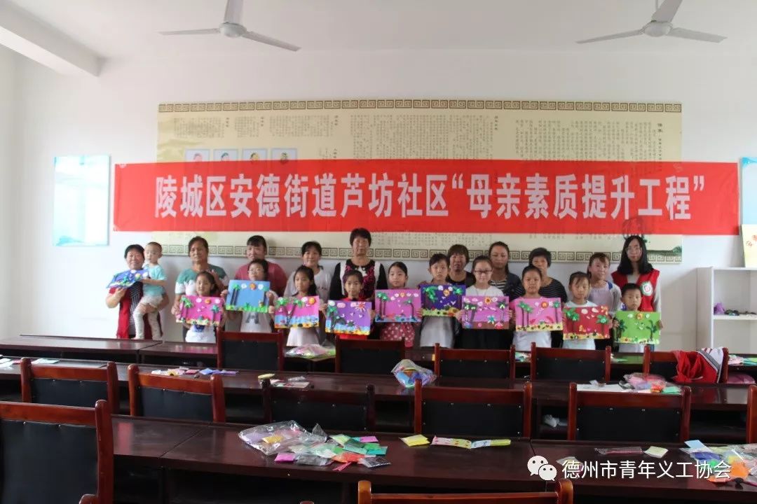 9月15日下午,协会到陵城区安德街道芦坊社区开展“母亲素质提升工程”,给辖区内的家长和孩子们送上主题为“七彩生活·亲子手工”活动。